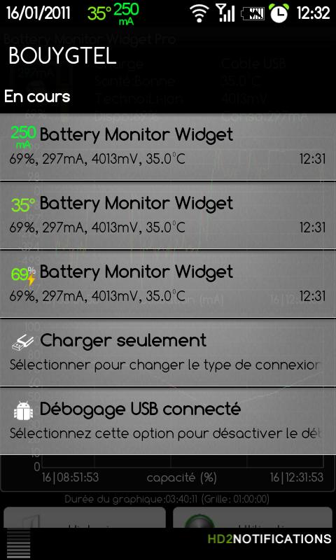 Overview:Complete battery watching with notification icon, history, graphics and alarms